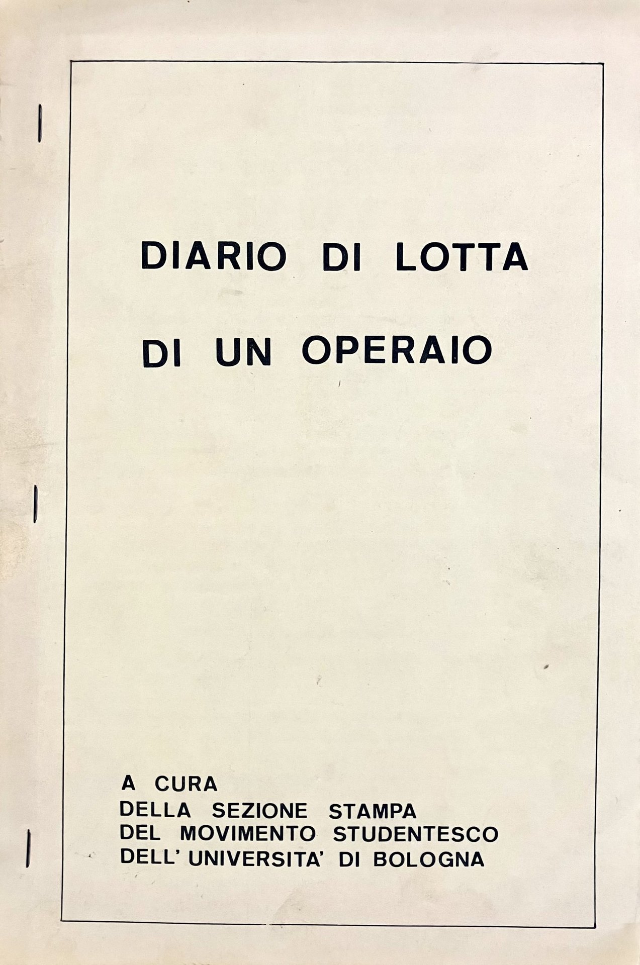 Legatura con punti metallici, stampato in ciclostile al solo recto, al piatto anteriore titolo difforme dal frontespizio (Diario di lotta di un operaio), due disegni al tratto nel testo. Un'ampia documentazione in tempo reale sulle lotte operaie nelle fabbriche, dalla Michelin a Trento, alla Cofler di Rovereto, poi l'Italcementi, la Pirelli, la Radi, la Lanerossi, con un'attenzione particolare alle lotte tessili della Marzotto in Valdagno. Segue una breve analisi di politica internazionale sulla primavera di Praga, le lotte degli studenti in Messico e la colonizzazione degli Stati Uniti in Italia. In ottimo stato.
