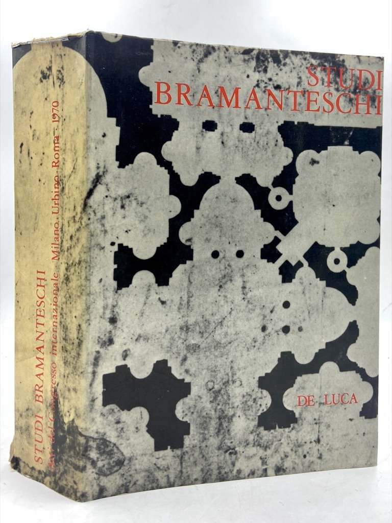 Brossura editoriale con sovraccoperta illustrata, cm 24 x 17, pp XLIV 853 (1), CCXXVIII tavole in nero. Atti del Congresso del settembre 1970, contiene gli interventi: Bruno Molajoli, La fortuna del Bramante; Anna Maria Brizio, Bramante e Leonardo alla corte di Ludovico il Moro; Peter Murray, Bramante paleocristiano; Otto H. Förster, Bramante und der norden; Germano Mulazzani, Nuove ipotesi sul viaggio di Bramante in Lombardia, Angiola Maria Romanini, Il Quattrocento «padano» e il Bramante; Carlo Perogalli, Inserimento di Bramante nel decorso dell'architettura lombarda e suo ruolo fra Quattrocento e Cinquecento; Cesare Brandi, Considerazioni sulla spazialità in Bramante pittore e in Bramante architetto; Augusto Cavallari Murat, Le venustà bramantesca tra razionalismi gotici e vitruviani; Agnoldomenico Pica, Città di Bramante; Francesco Starace, Bramanti opinio super domicilium seu templum magnum: Osservazioni sulla teoria dell'architettura; Antonio Cadei, Induzioni sulla determinazione delle strutture in Bramante; Gabriella Ferri Piccaluga, Rapporti tra decorazione e architettura nel Bramante lombardo; Ambrogio Palestra, Nuove testimonianze sulla chiesa di San Satiro; Raffaello Trinci, Indagini sulle fasi costruttive della chiesa di S. Maria presso S. Satiro; Carlo Pedretti, Il progetto originario per Santa Maria delle Grazie e altri aspetti inediti del rapporto Leonardo-Bramante; Wolfgang Lotz, La Piazza Ducale di Vigevano un foro principesco del tardo Quattrocento; Maria Luisa Ferrari, Il raggio di Bramante nel territorio cremonese: contributi ad Agostino De Fonduli; Luisa Giordano, Bramantino architetto e il rapporto Bramante-Bramantino; Valeria Mariani, Novità sul Battaggio; Pietro Scurati-Manzoni, L'influenza di Bramante nell'architettura delle regioni settentrionali nel Ducato di Milano; Pasquale Rotondi, Ancora sullo studiolo di Federico da Montefeltro nel Palazzo Ducale di Urbino; Eugenio Battisti, Bramante, Piero e Pacioli ad Urbino; Corrado Maltese, Architettura «ficta» 1472 circa; Howard Burns, Progetti di Francesco di Giorgio per i conventi di San Bernardino e Santa Chiara di Urbino; Kathleen Weil-Garris Posner, Alcuni progetti per piazze e facciate di Bramante e di Antonio da Sangallo a Loreto; James S. Ackerman, Notes on Bramante's bad reputation; Paolo Portoghesi, La lingua universale: cultura e architettura tra il 1503 e il 1527; Mario Rivosecchi, Dal pittorico di Bramante al pittoresco del Borromini; Christof Thoenes, Bramante e la «bella maniera degli antichi»; Giuseppe Marchini, Spigolature bramantesche; Stefano Ray, Bramante, Raffaello e l'antico: «Gran luce Vitruvio, ma non tanto che basti»; Luisa Chiumenti, Spazialità bramantesca in rapporto al tessuto urbano di Roma nel '500; Doris D. Fienga, Bramante autore delle «Antiquarie prospettiche romane», poemetto dedicato a Leonardo da Vinci; Paolo Marconi, Il Chiostro di Santa Maria della Pace in Roma; Claudio Tiberi, Misure e contemporaneità di disegno del Chiostro di S. Maria della Pace e del Tempietto di S. Pietro in Montorio; Hubertus Günther, Bramantes Hofprojekt um den Tempietto und seine darstellung in Serlios drittem Buch; Renato De Fusco - Maria Luisa Scalvini, Segni e simboli del Tempietto di Bramante; Giuseppe Tibaudo O.F.M., Precisazioni sul Tempietto di S. Pietro in Montorio; Deoclecio Redig de Campos, Bramante e le logge di San Damaso; Christoph Liutpold Frommel, Il Palazzo dei Tribunali in Via Giulia Arnaldo Bruschi, Bramante, Leonardo e Francesco di Giorgio a Civitavecchia; John Sherman, Il « tiburio» di Bramante; Christof Thoenes, Note sul «ninfeo» di Genazzano; Werner Oechslin, Una ricostruzione settecentesca del S. Pietro di Bramante; Franz Graf Wolff Metternich, Alessandro Pasqualini da Bologna e la diffusione del linguaggio bramantesco in Germania Jürgen Zänker, Il primo progetto per il Santuario di Santa Maria della Consolazione a Todi e la sua attribuzione; Umberto Nofrini, La chiesa della Consolazione a Todi; Maria Cristina Bonagura, Considerazioni sulla chiesa di S. Maria della Consolazione a Todi; Mario Pericoli, Precisazioni sulla Consolazione di Todi; André Chastel, Gli studi bramanteschi.