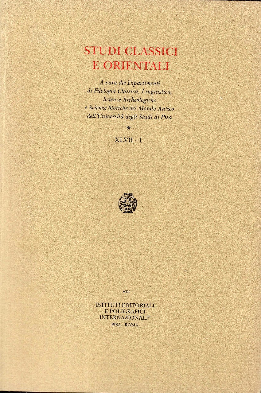 Studi classici e orientali XLVII - 1. A cura dei dipartimenti di Filologia classica, linguistica, scienze archeologiche e scienze storiche del mondo antico dell'Università