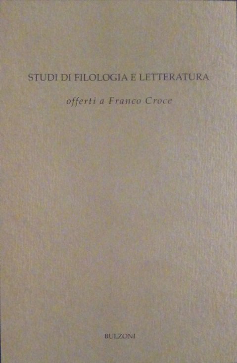 STUDI DI FILOLOGIA E LETTERATURA OFFERTI A FRANCO CROCE