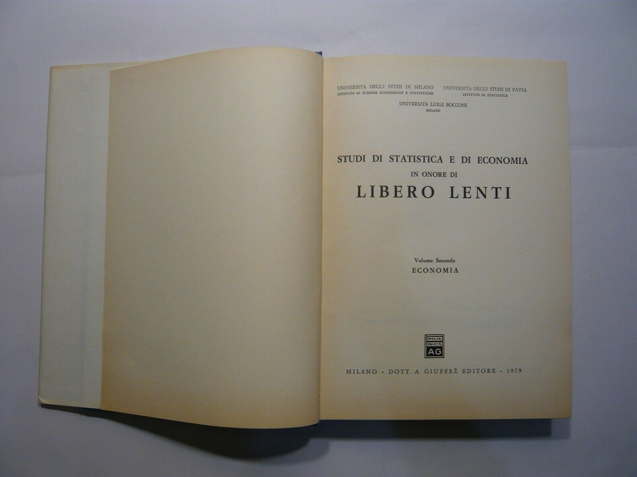 STUDI DI STATISTICA E DI ECONOMIA IN ONORE DI LIBERO LENTI (2 voll.)