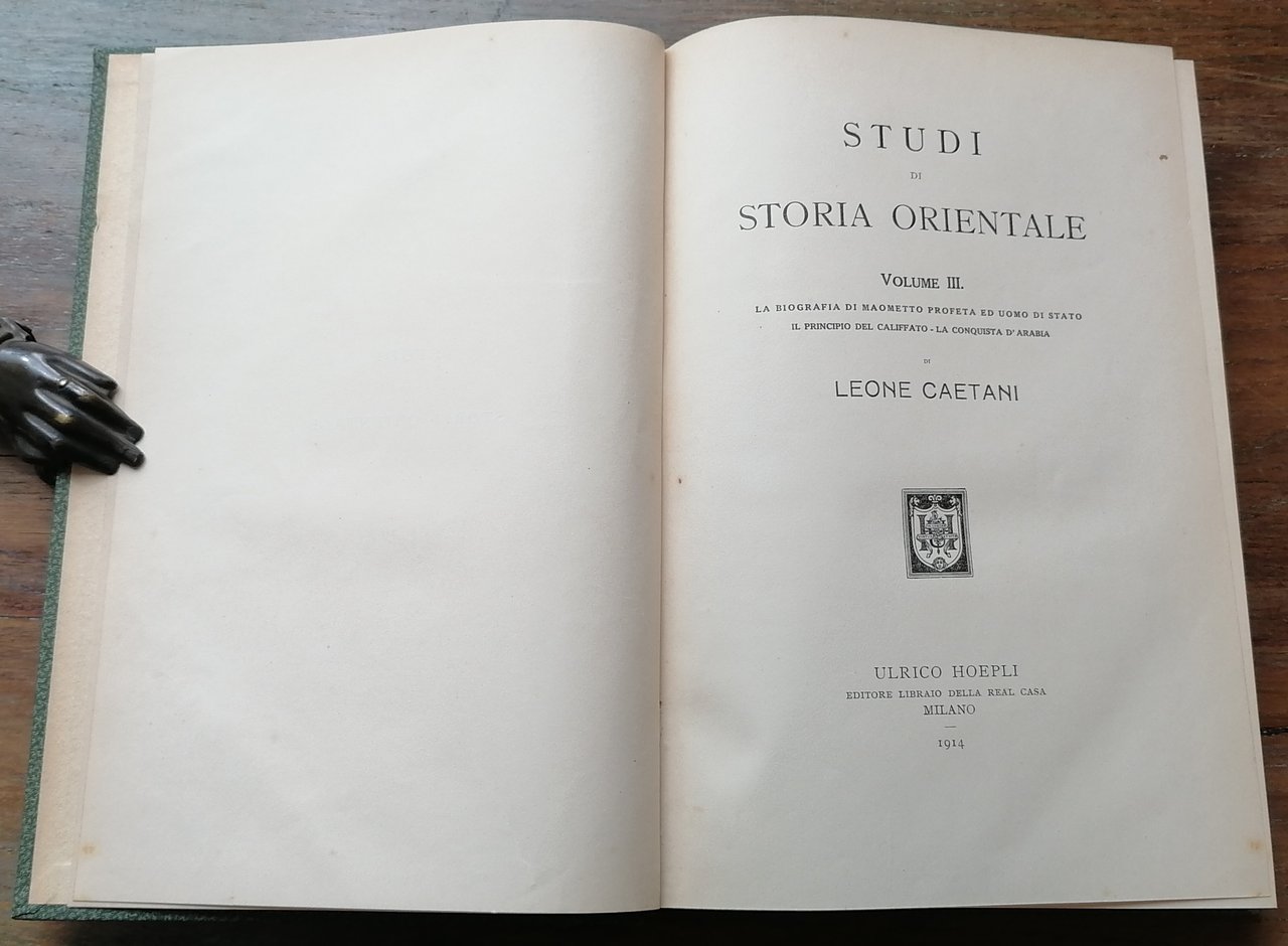 Studi di Storia Orientale. Volume I : Islam e Cristianesimo - L' Arabia preislamica - Gli arabi antichi. Volume III : La biografia di Maometto profeta di Dio ed uomo di stato - Il principio del Califfato - La conquista dell'Arabia.