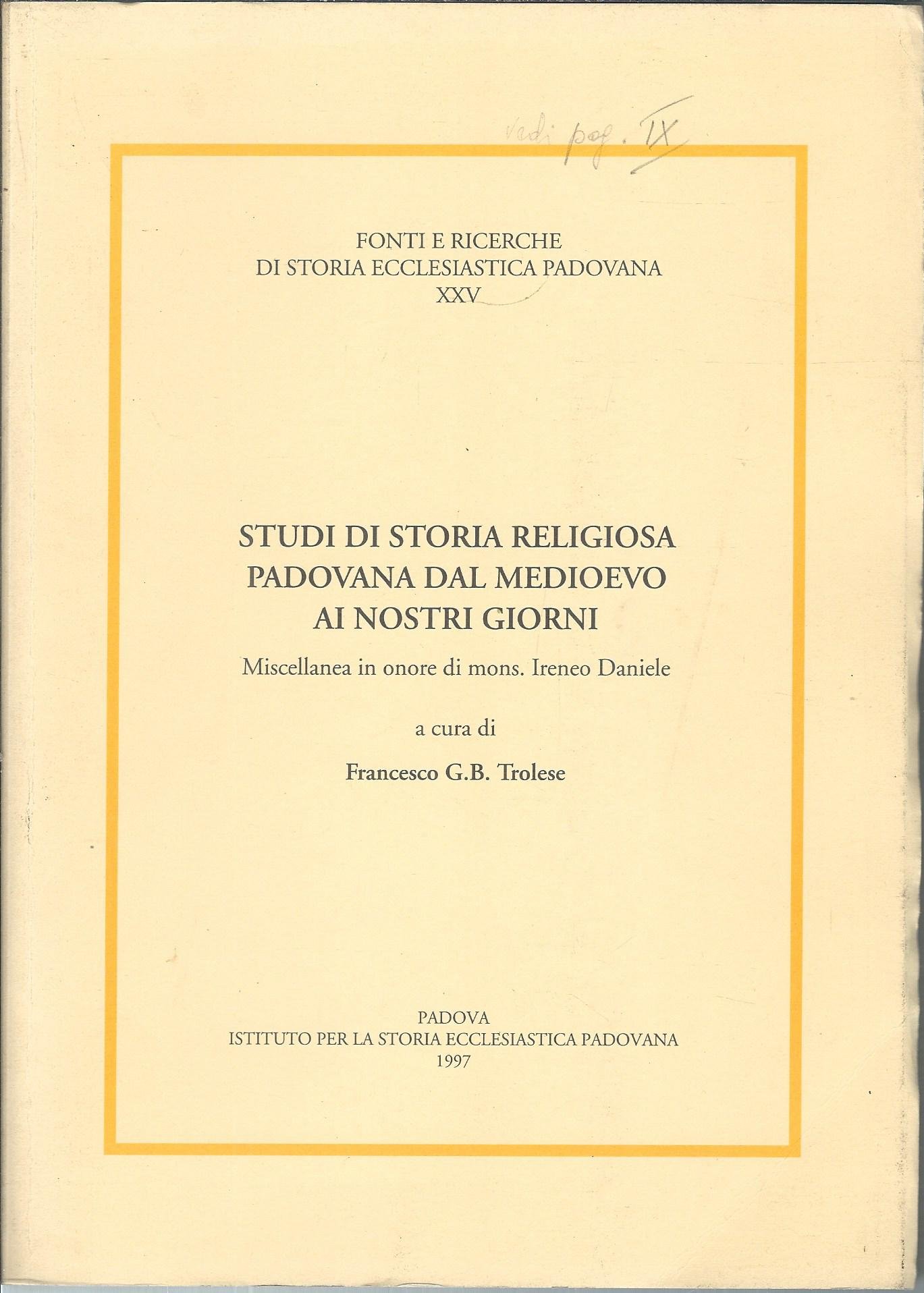 STUDI DI STORIA RELIGIOSA PADOVANA DAL MEDIOEVO AI NOSTRI GIORNI