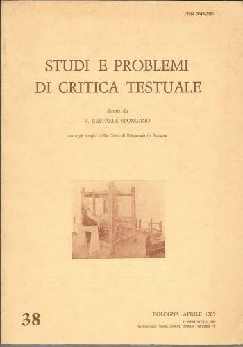 Studi e problemi di critica testuale, n° 38 Aprile 1989