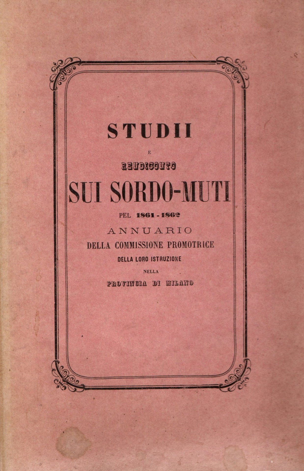 Studi e rendiconto sui sordo-muti per il 1861-1862. Annuario della commisione promotrice della loro istruzione nella provincia di Milano