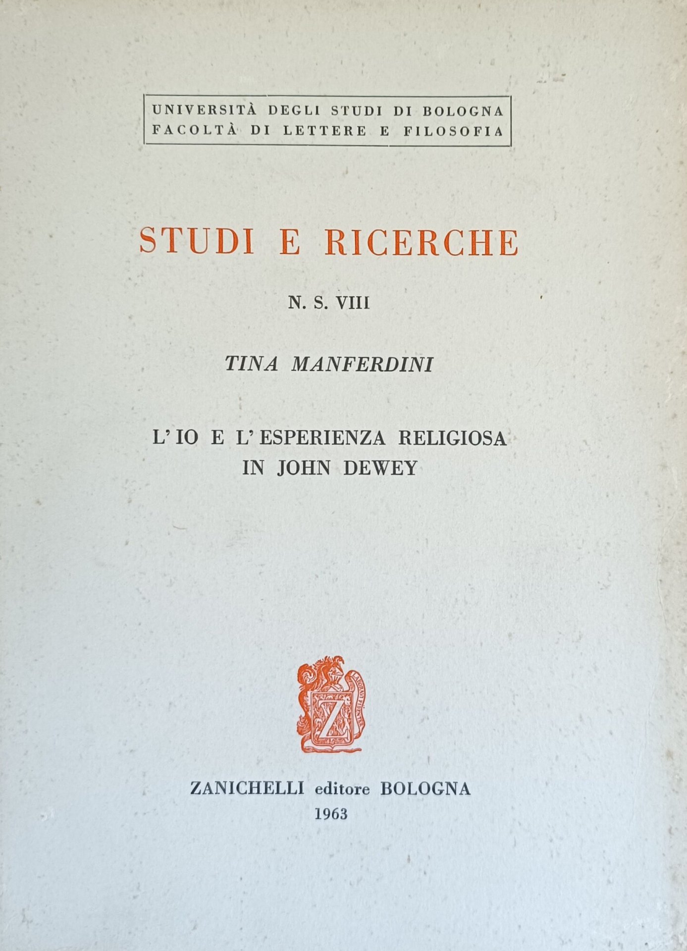 STUDI E RICERCHE N. S. VIII - L'IO E L'ESPERIENZA RELIGIOSA IN JOHN DEWEY