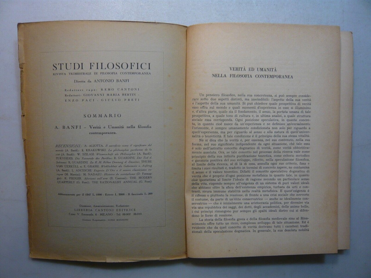 STUDI FILOSOFICI.Rivista Trimestrale diretta da Antonio Banfi, 1947[Anceschi