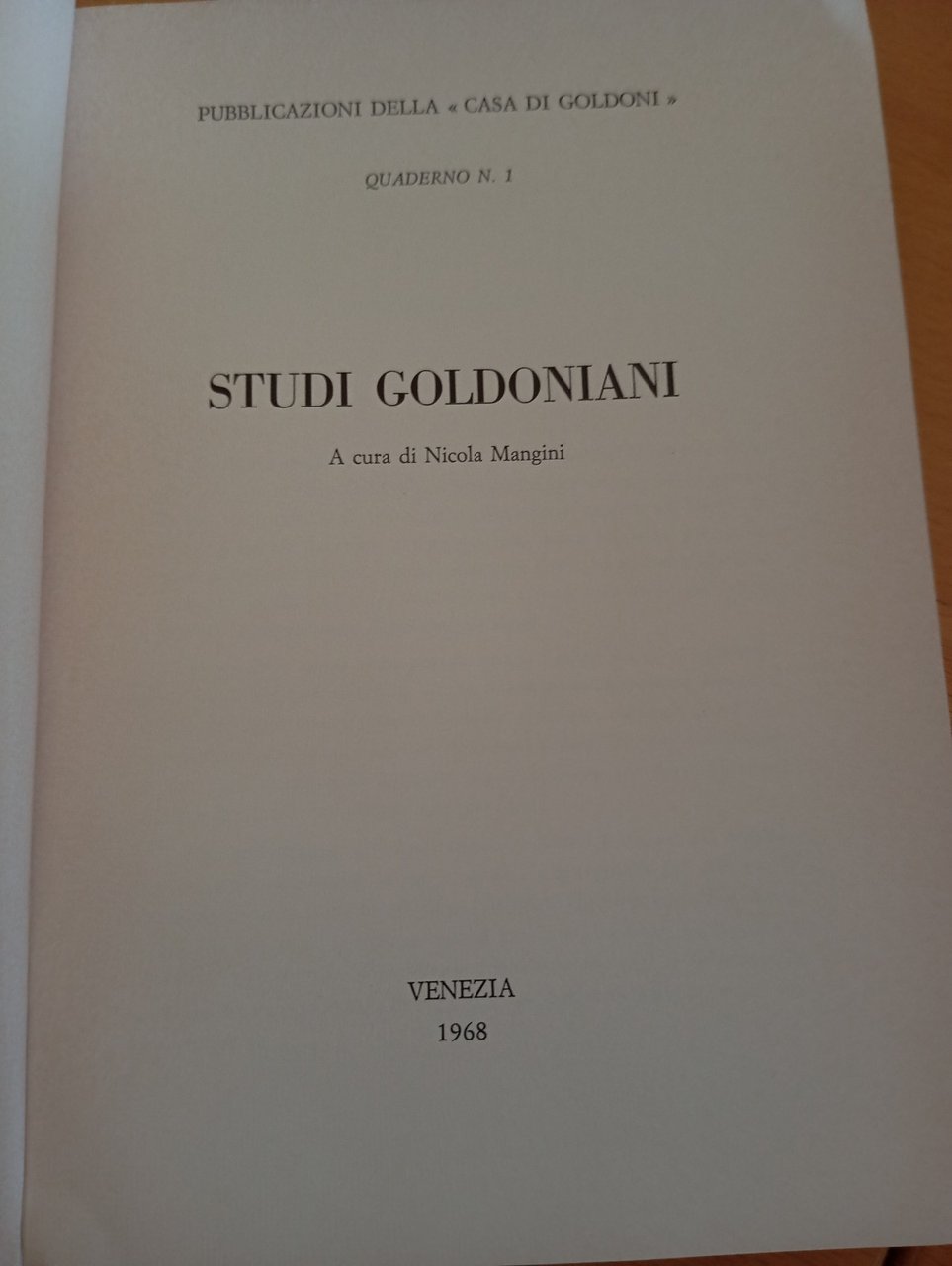 Studi goldoniani, volume 1, Nicola Mangini, 1968