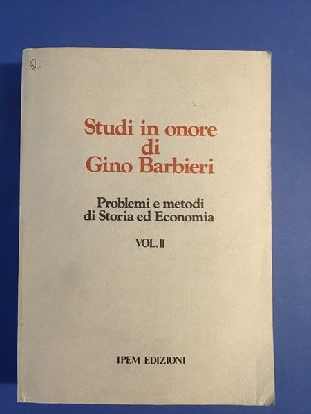 STUDI IN ONORE DI GINO BARBIERI. PROBLEMI E METODI DI STORIA ED ECONOMIA - VOL. II