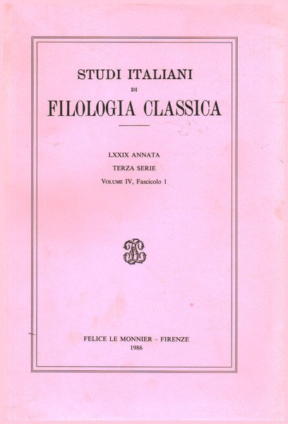 Studi italiani di filologia classica LXXIX Annata. Terza Serie. Volume IV