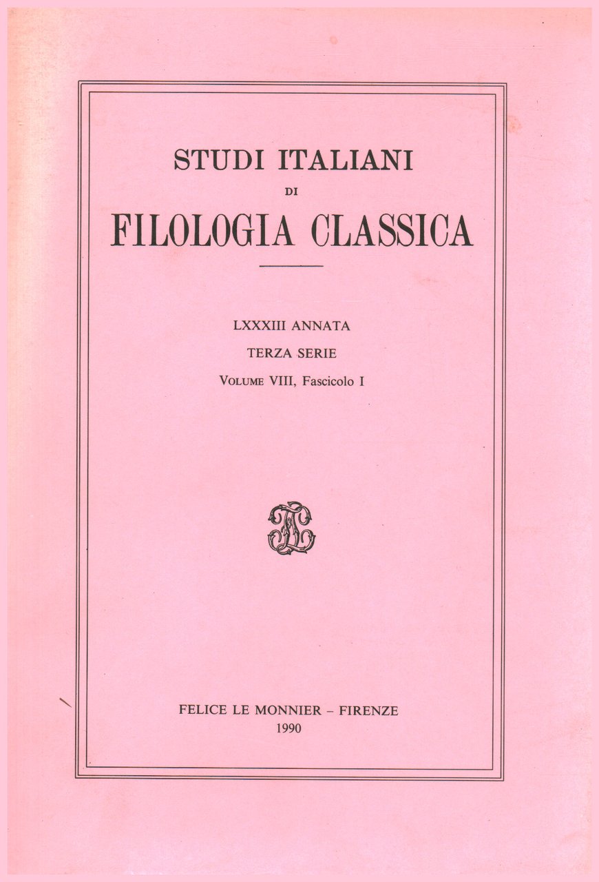 Studi italiani di filologia classica LXXXIII Annata. Terza Serie. Volume VIII, Fascicolo 1