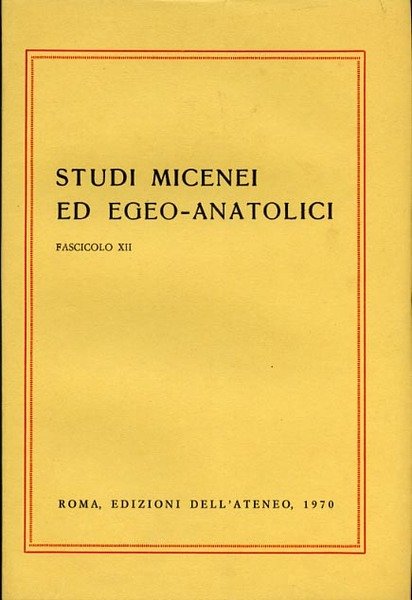 Studi Micenei ed Egeo-anatolici. Fasc.XII. Indice articoli:-G.Maddoli, Contributo allo studio delle origini della polis. -C.Hopkins, The Second Helladic Period. -O.Carruba, Di nuove e vecchie particelle anatoliche. -P.H.Ilievski, Il sincretismo dei casi in miceneo (è sincretizzato lo strumentale con il dativo?). -E.Peruzzi, Una concordanza giuridica latino-ittita. -M.D.Petrusevski, Interprétations de quelques mots grecs mycéniens. -P.Cassola Guida, Su un frammento di vaso miceneo da Enkomi. -C.Mavriyannaki, Remarques sur l'identificatio