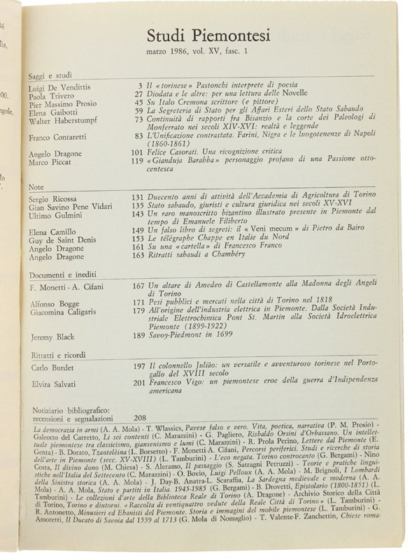 STUDI PIEMONTESI. Vol.XV - 1986, fasc. 1. [Ottimo]