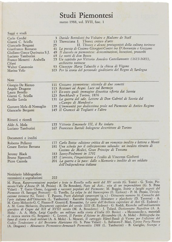STUDI PIEMONTESI. Vol.XVII - 1988, fasc.1. [Ottimo]