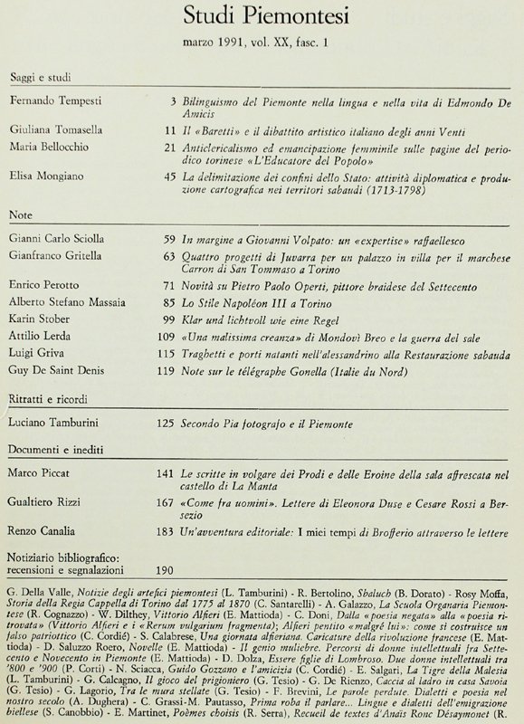 STUDI PIEMONTESI. Vol. XX - 1991, fasc.1. [Ottimo]