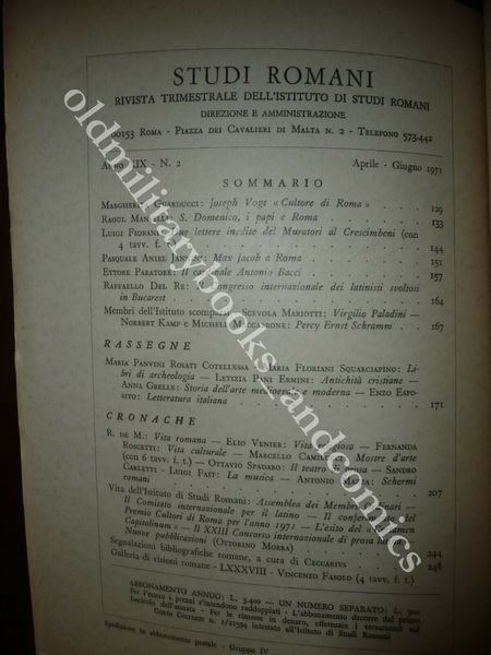 STUDI ROMANI RIVISTA TRIMESTRALE DELL'ISTITUTO DI STUDI ROMANI ANNO XIX N 2 1971