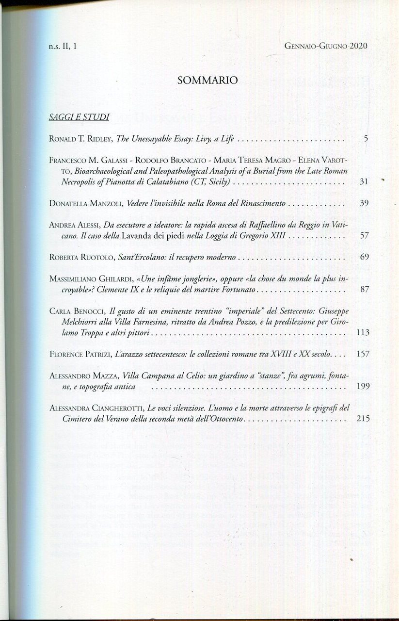 Studi Romani. Vol. II,1 - Gennaio - Giugno 2020 Rivista semestrale dell'Istituto Nazionale di Studi Romani (LXIV dell'intera collezione)