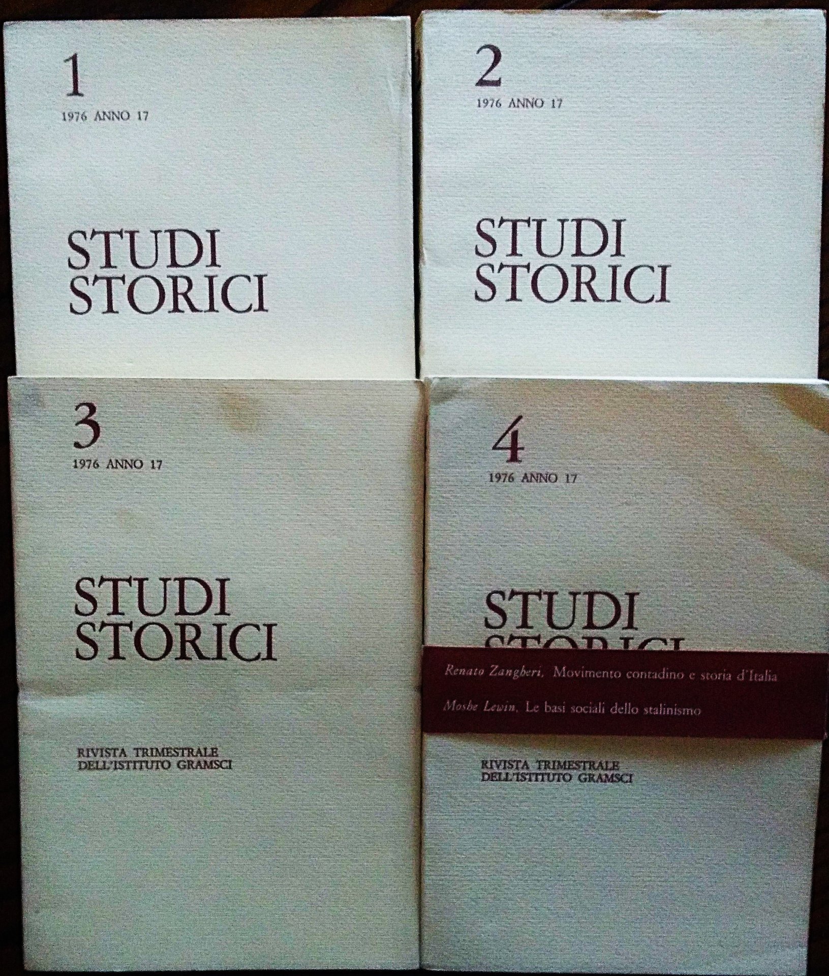 Roma, Istituto Gramsci, 1976. 16°, quattro fascicoli, pag. 211; 276; 253; 274, brossure editoriali. Minime tracce d'uso, bella copia. Annata completa.