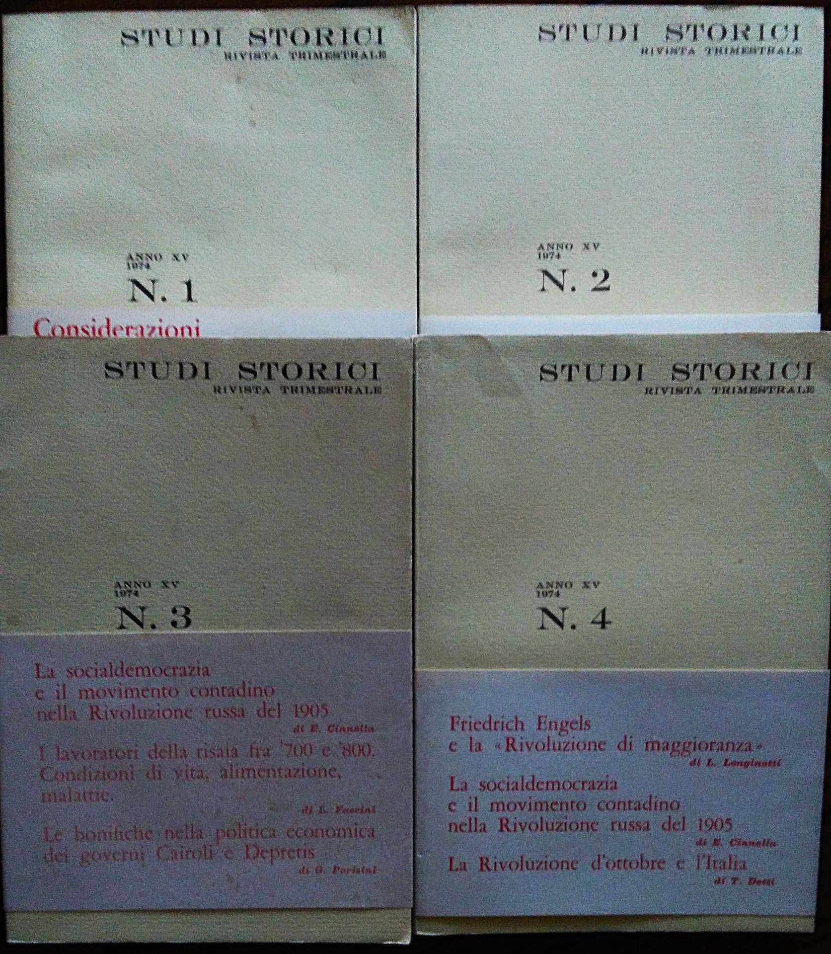 Roma, Istituto Gramsci, 1974. 16°, quattro fascicoli, pagine complessive 1058, brossure editoriali. Minime tracce d'uso, bella copia. Annata completa.