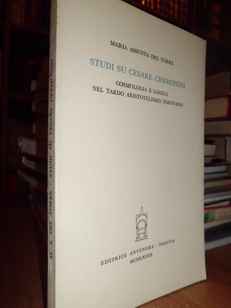 Studi su Cesare Cremonini. Cosmologia e logica nel tardo aristotelismo padovano. Maria, Assunta Del Torre. Padova, Editrice Antenore, MCMLXVIII. In - 16°, cartoncino edit., tavola con ritratto del Cremonini in antiporta. 150 pp. Libro in stato di nuovo.