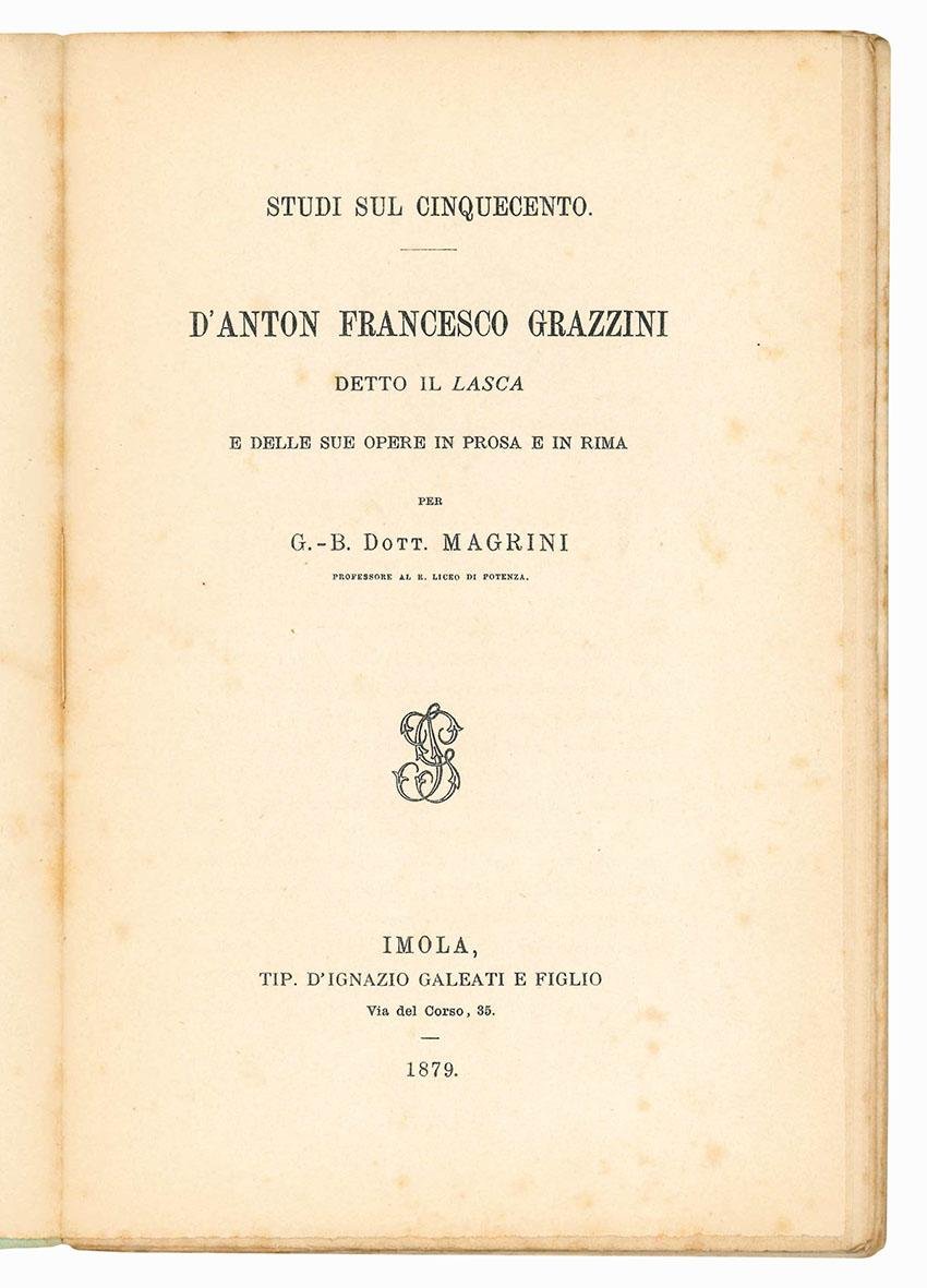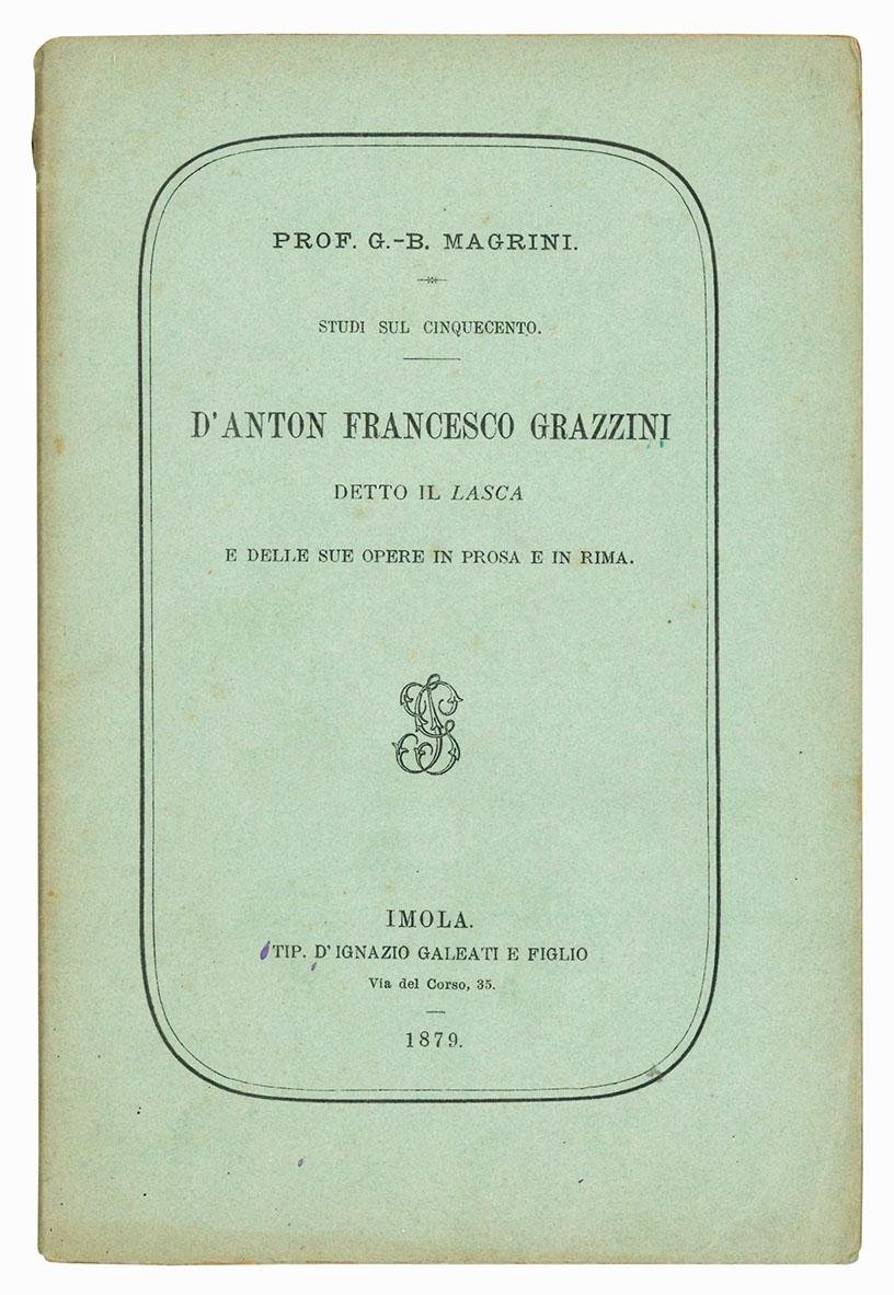Studi sul Cinquecento d'Anton Francesco Grazzini detto il Lasca e delle sue opere in prosa e in rima.