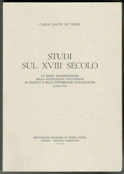 Studi sul XVIII secolo. Le prime manifestazioni della Rivoluzione d'occidente in Francia e nelle Republiche oligarchiche (1748-1775)
