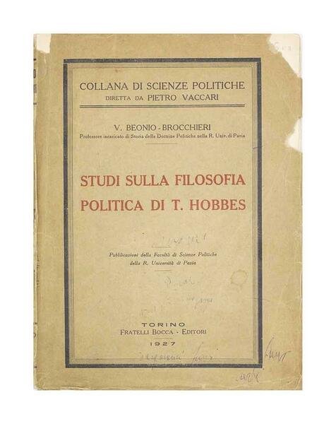 Autore: V. Beonio - Brocchieri Titolo: Studi sulla Filosofia politica di T. Hobbes Edizione: Fratelli Bocca 1927 Dimensioni: 20x15 cm Pagine: 190 Copertina: Brossura Condizioni: Buone come da foto