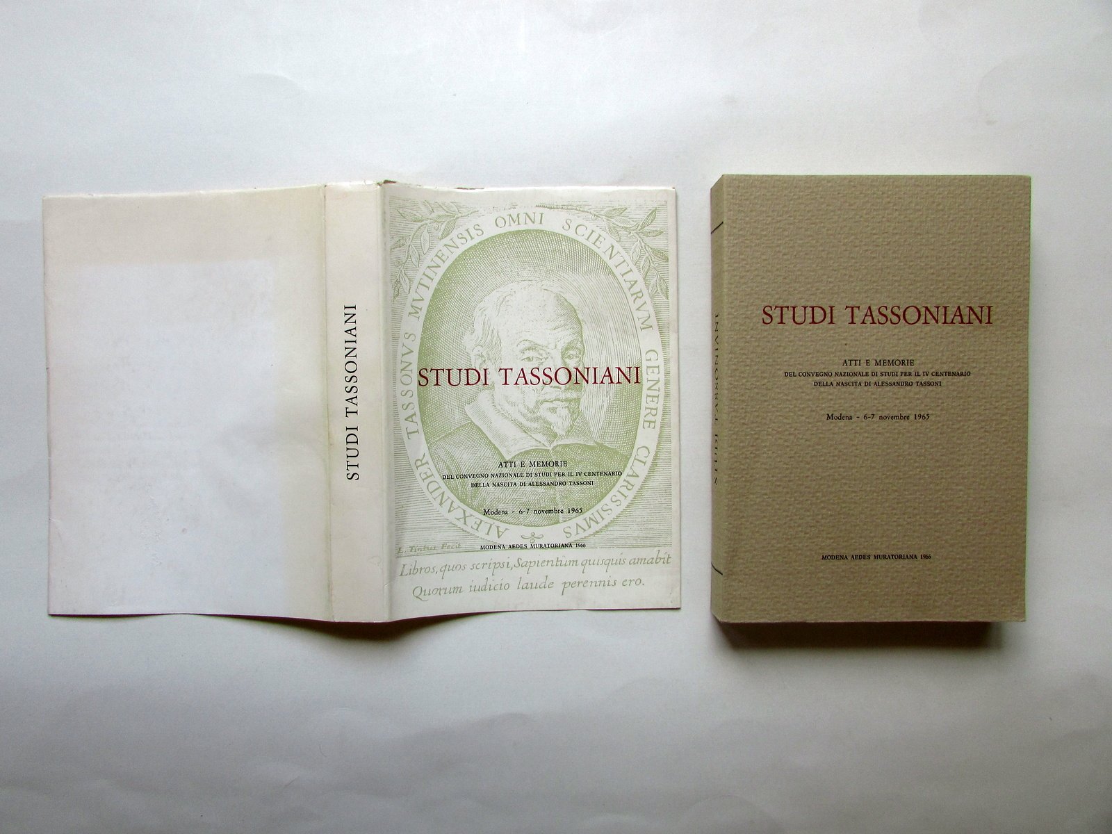 AA. VV., Studi Tassoniani - atti e memorie del convegno nazionale di studi per il IV centenario della nascita di Alessandro Tassoni Modena - 6-7 novembre 1965 Aedes Muratoriana, Modena 1965; cm 24,5x17; pp. 384; brossura ed. con sovraccoperta ed. Condizioni di conservazione Molto ben conservato con leggere tracce d'uso, sovraccoperta ed. minimamente sgualcita ai margini, lato posteriore con qualche piccola leggera abrasione. Interni ottimi. Tiratura limitata di 760 copie numerate, n/s 251. SETT73.L25937 N