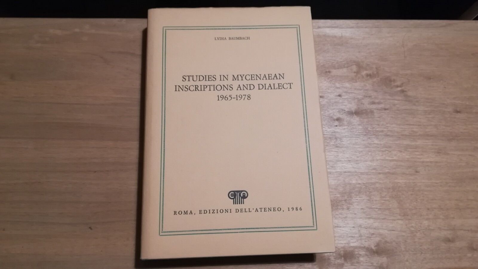 Baumbach - Studies in mycenaean inscriptions and dialect 1965-1978 Edizioni dell'Ateneo - Prima edizione 1986 Libro in ottime condizioni, minimi segni del tempo. Non esitate a contattarci per altre foto o richieste. Saremo lieti di soddisfare ogni vostra esigenza.