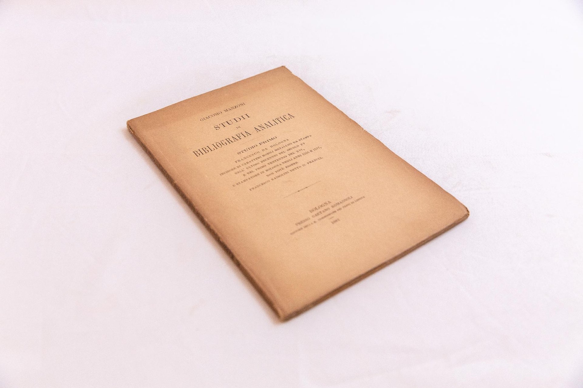 8°, pp. 76, brossura editoriale, ottima conservazione, uniforme sbiaditura esterna, interno fresco. Edizione originale. Primo di una serie di tre contributi monografici ricordati da Ottino Fumagalli n. 52 (citano l'edizione del 1882 che contiene tutti e tre i contributi ed è adorna di tavole incise). Tutt'oggi gli studi di bibliografia del Manzoni, aristocratico bibliofilo e patriota italiano, sono presi a modello da eminenti bibliografi, in quanto fondatori della moderna ricerca bibliografica. Stanley Morrison per esempio cita Manzoni tra i pionieri dello studio del caraterre tipografico che tanta parte avrà tra i bibliofili inglesi della prima metà del XX secolo. (cfr. Early Italian writings books, 1990). *** TUTTI I NOSTRI LIBRI SONO VISIBILI PREVIO CONTATTO MAIL O TELEFONO NELLA NUOVA SEDE DI MILANO: LIBRERIA COSMOPOLIS, VIA JOMMELLI, 22. ***