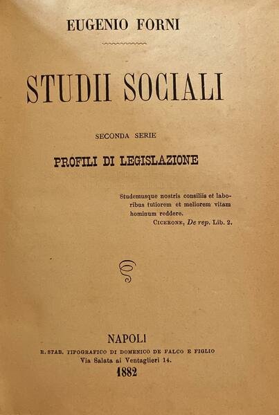 Studii sociali seconda serie. profili di legislazione