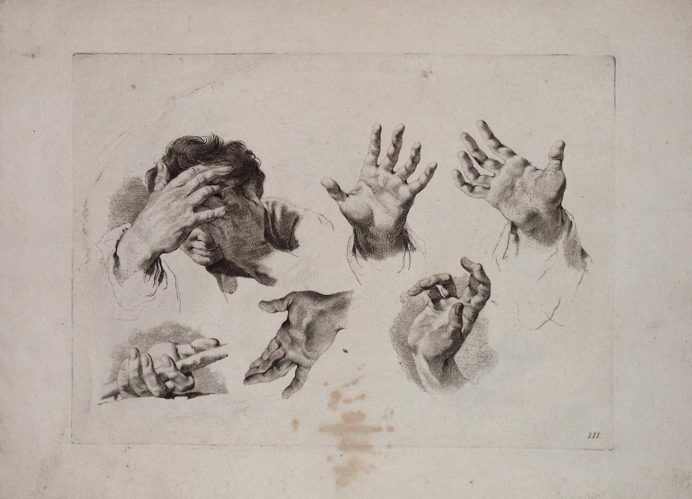 >Incisione in rame (cm. 22,5x31 e ampi margini). Tratta da Piazzetta, G.B. Studi di Pittura già dissegnati da Giambattista Piazzetta, ed ora con l'intagli di Marco Pitteri. Venezia, 1760. Prima edizione postuma voluta da Giovanni Battista Albrizzi. L'attività del Piazzetta negli ultimi anni di vita fu dedicata alla produzione di disegni, molti dei quali usciti dai torchi dell'amico G.B. Albrizzi. L'editore veneziano aveva commissionato all'artista una serie di disegni per un edizione ad uso di chi quest'arte ''o per e per diletto desidera di apprendere i fondamenti''. Sei anni dopo la morte del piazzetta uscì quest'opera grazie alla collaborazione di due valenti incisori quali Alvise Pitteri e Francesco Bartolozzi. Questa tavola è celebre in quanto venne plagiata dal longaronese Niccolò Cavalli (1730-1822).