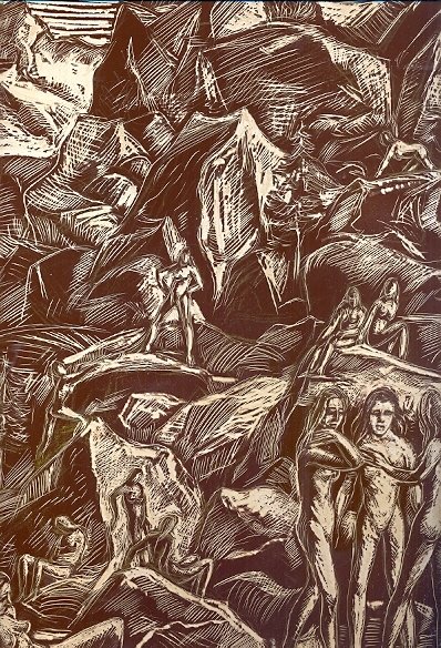 Prova per xilografia su cartone di cm. 56 x 35. Parte incisa cm. 36 x 28. Firma in basso a destra.
