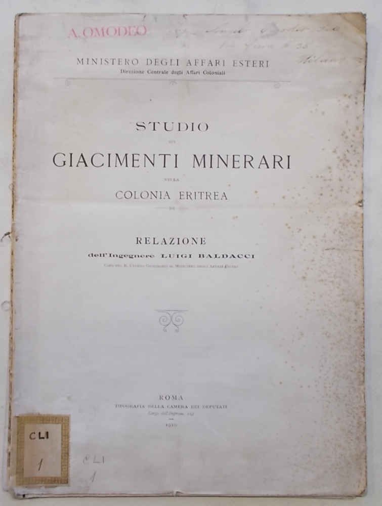 Studio sui giacimenti minerari nella Colonia Eritrea.
