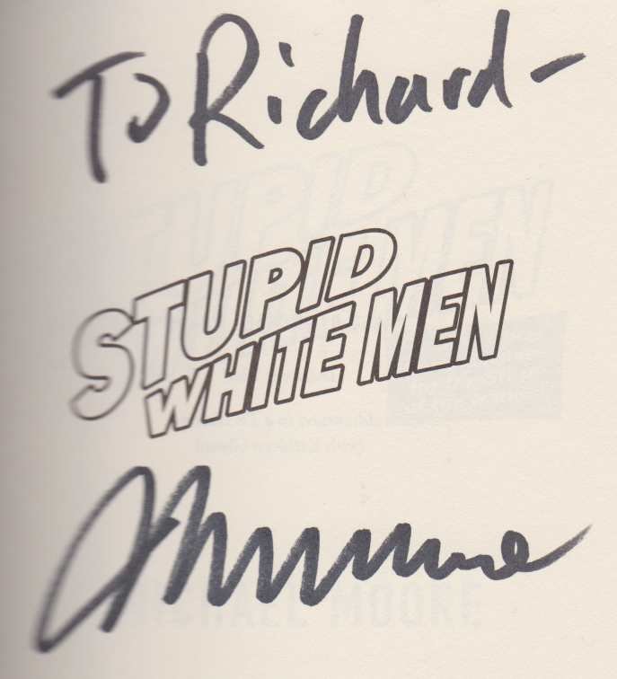 Light wear to DJ; INSCRIBED to half-title page by author. Author Moore details what he feels are the problems and possible remedies for American Rule By Stupid White Men; 8vo; 277 pages
