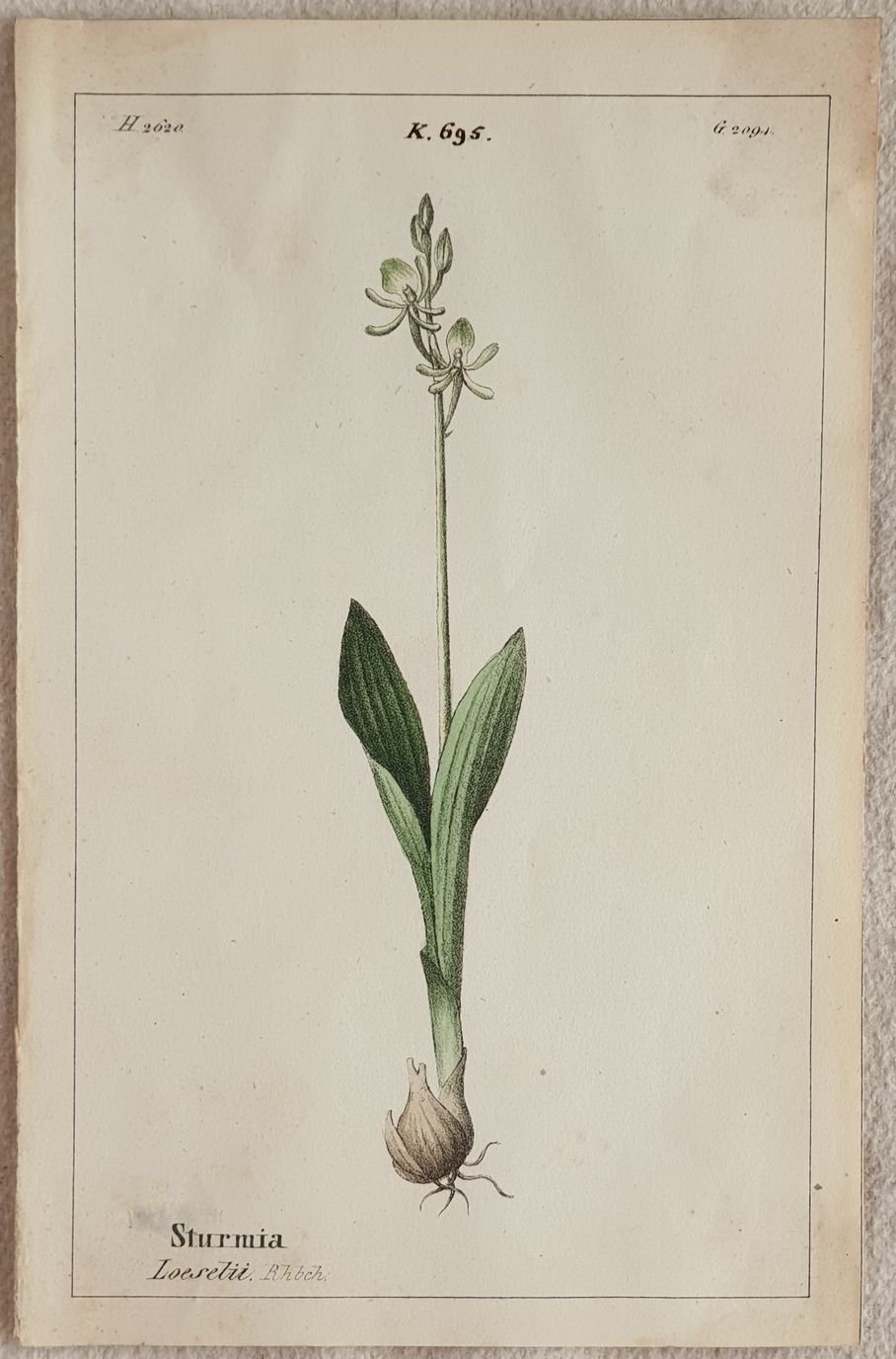 Bella cromolitografia del 1843 tratta dalla celebre opera di botanica "Flora der Schweiz" di Heinrich Romer sulla flora della Svizzera. In buone condizioni, qualche fioritura. Segni di colla al verso. Sturmia loeselii TECNICA: Cromolitografia DIMENSIONI FOGLIO: cm 17,5x11 DIMENSIONI INCISIONE: cm 16x10 EPOCA: 1843 CONDIZIONI: Buone condizioni, qualche fioritura. Resto di colla al verso.Beautiful chromolythography of 1843 taken form the famous work of botany "Flora der Schweiz" by Heinrich Romer about flowers of Switzerland. In good conditions, some foxings. Glue signs in the verso of page. TECHNIQUE: Lytography PAGE SIZE: cm 17,5x11 PRINT'S SIZE: cm 16x10 PERIOD: 1843 CONDITION: good conditions with some foxings. Little tears in the lower edge. Glue signs in the verso of page.