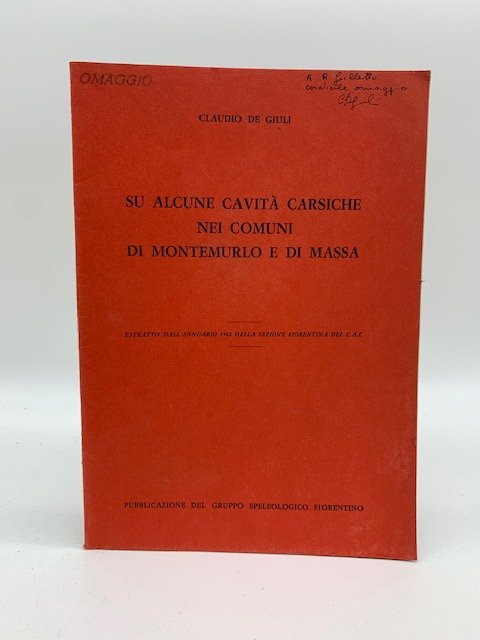 In 8, cm 17 x 24, pp. 16 con illustrazioni nel testo. Brossura editoriale. Invio autografo dell'autore. Studio su un sistema di piccole cavita' esplorate dal Gruppo Speleologico fiorentino in provincia di Prato.