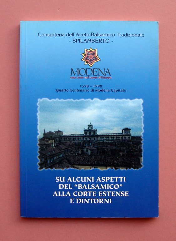Libretto, Su alcuni aspetti del Balsamico" alla Corte Estense e Dintorni Ed. El Quatr'ari, Spilamberto, 1998; cm 24x17; pp. 68; br. ed. a cura della Consorteria Aceto Balsamico Tradizionale , Spilamberto con belle ill. fot. a colori n t. e f.t., ricette (metodo Conti Salimbeni). Foto di copertina: Beppe Zagaglia Condizioni di conservazione. Esemplare in ottime condizioni. Modena una corte nel cuore d'Europa 1598-1998 quarto centenario di Modena Capitale OPEB.5331 blu "