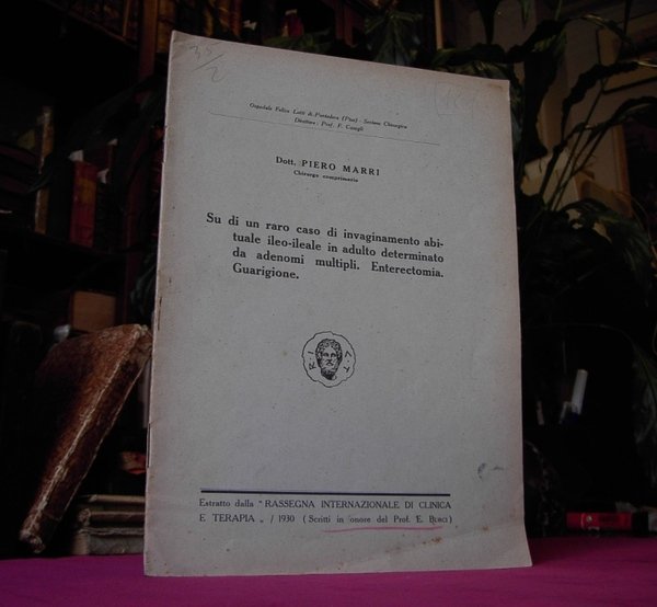 Fascicolo in 8, brossura editoriale, frontespizio, 19 pp., bianca finale. Interessante dettagliato caso, descritto dal comprimario dellospedale civile di Pontedera, estratto dalla Rassegna internazionale di clinica e terapia. Scritti in onore del Prof. E. Burci. Corredato di 4 figure n.t. In buone condizioni.