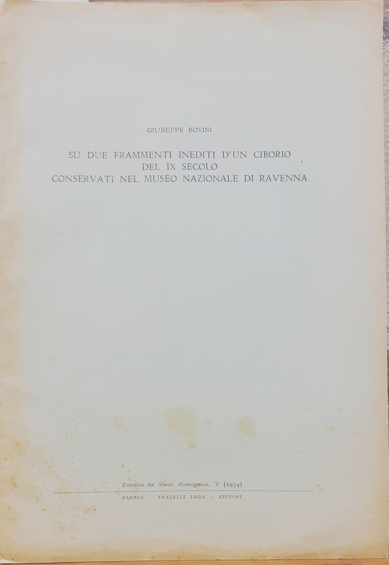 SU DUE FRAMMENTI INEDITI D'UN CIBORIO DEL IX SECOLO CONSERVATI NEL MUSEO NAZIONALE DI RAVENNA.