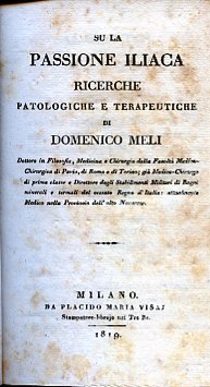 In-16° (185x120mm), pp. XXXV, 115, brossura posteriore muta di colore verde. Sparse fioriture, ma bell'esemplare nel complesso. Prima e unica edizione, rara. Il Meli (Roma, 1784-Pesaro, 1865) fu medico e chirurgo nella Provincia dell'alto Novarese e in numerose altre loclaità italiane, Direttore degli Stabilimenti Militari di Bagni minerali e termali del Regno d'Italia, nonché autore di numerose pubblicazioni mediche. Wellcome, IV, p. 107. Sul Meli (ignorato dal Dizionario Biografico degli Italiani) cfr. Giuseppe Armocida, Domenico Meli in: Biografie Mediche. Rivista del Centro per lo studio e la promozione delle professioni mediche, I, gennaio 2013.