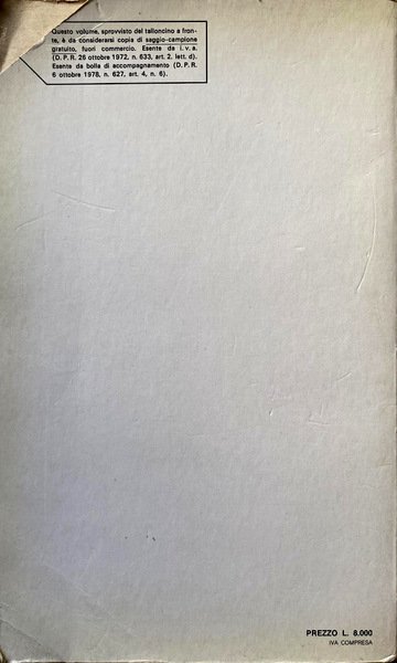 DISPONIBILITÀ GARANTITA AL 99%; SPEDIZIONE ENTRO 12 ORE DALL'ORDINE. OTTIME CONDIZIONI, MAI SFOGLIATO, LIEVISSIMI SEGNI DEL TEMPO. PUNZONATURA CAMPIONE SAGGIO IN ANTIPORTA E ASSENZA DEL TALLONCINO SUL RETRO DI COPERTINA.