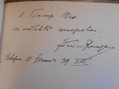 Tre opere dello scrittore e giornalista romagnolo Federico Ravagli di Bagnacavallo. "Sui margini della Gefara. Da Tripoli a Leptis Magna. Note di viaggio" : Tripoli, Tipo-Litografia Scuola Arti e Mestieri, 1927, in 8°, brossura editoriale, pp. 46,(4), con 9 illustrazioni in nero su tavole fuori testo. "Alba d'Impero. Echi e ritmi della riconquista libica" : Bologna, Licinio Cappelli, 1938, In 8°, brossura editoriale, pp. 77,(1), con dedica autografa dell'autore al recto del foglio di guardia anteriore. "Frammenti di vita. Raccolti in lirichette familiari popolaresche rusticane" : Bologna, Coop. Tipografica Azzoguidi, 1946, in 16° grande, brossura editoriale, pp. 94,(2), edizione numerata di duecento esemplari (n. 26). Volumetti ben conservati.
