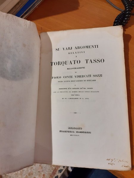 Sui vari argomenti relativi a Torquato Tasso. Illustrazione
