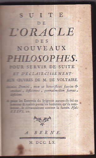 Suite de l' Oracle des Nouveaux Philosophes; Pour servir de suite et d' éclaircissement aux Oeuvres de M. de Voltaire