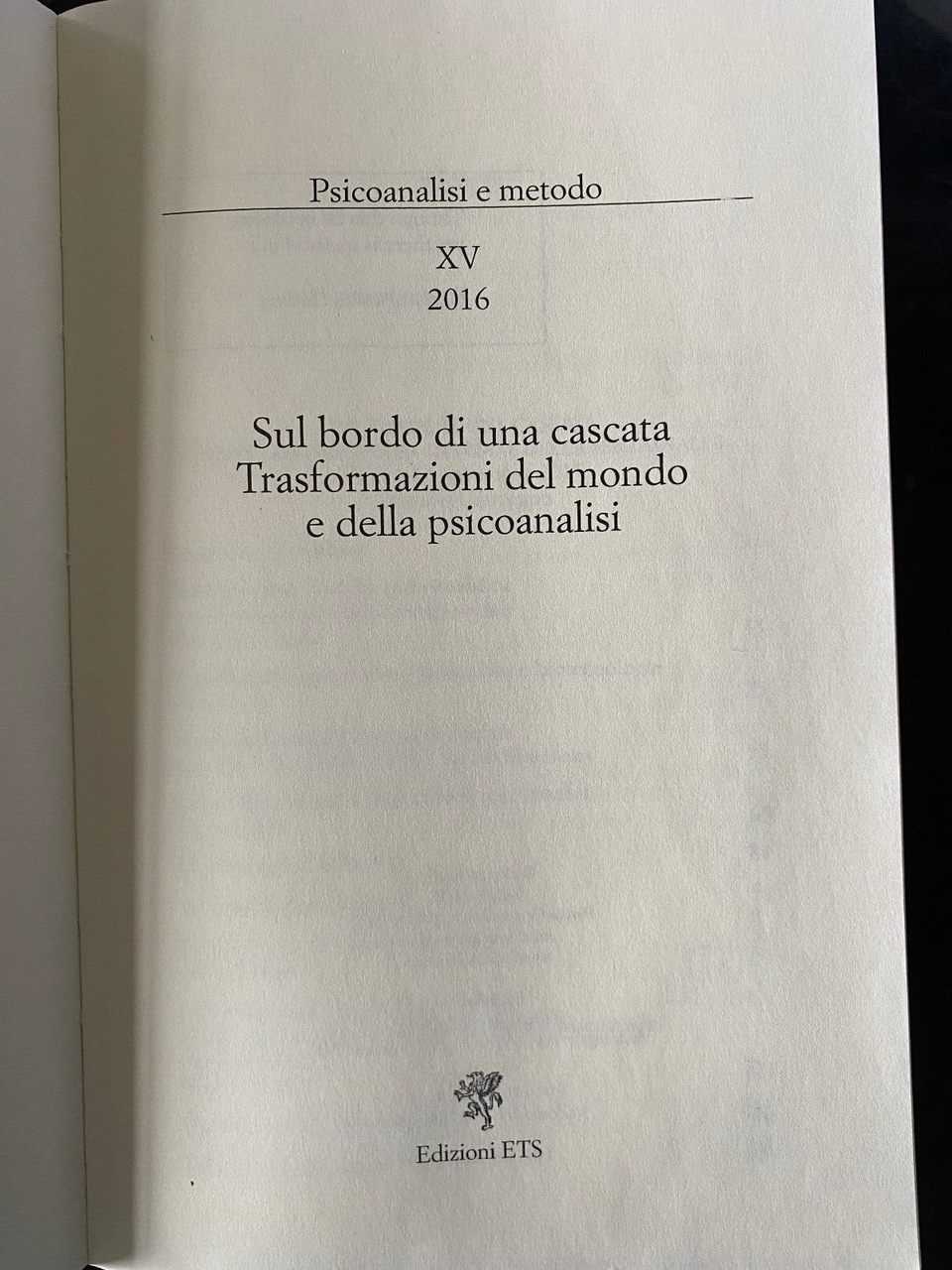 Sul bordo di una cascata Trasformazioni del mondo e della pisicoanalisi ETS 2016