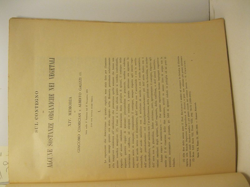 Sul contegno di alcune sostanze organiche nei vegetali. XIV memoria letta nella 2o sessione del 27 novembre 1921 (con una tavola fuotri testo)
