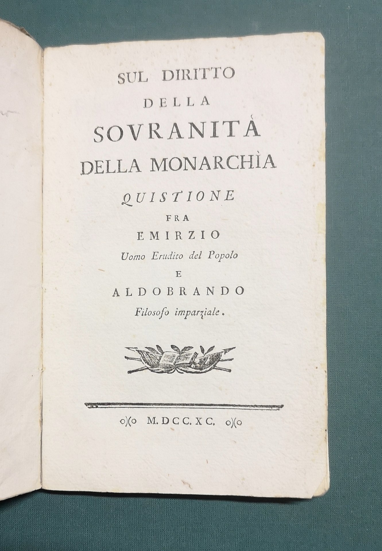 Sul diritto della sovranità della Monarchia. Quistione fra Emirzio uomo erudito del popolo e Aldobrando filosofo imparziale.