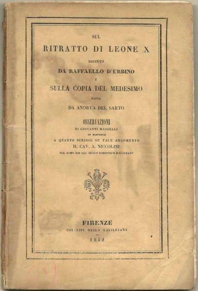 Sul ritratto di Leone X dipinto da Raffaello d'Urbino e sulla copia del medesimo fatta da Andrea Del Sarto.