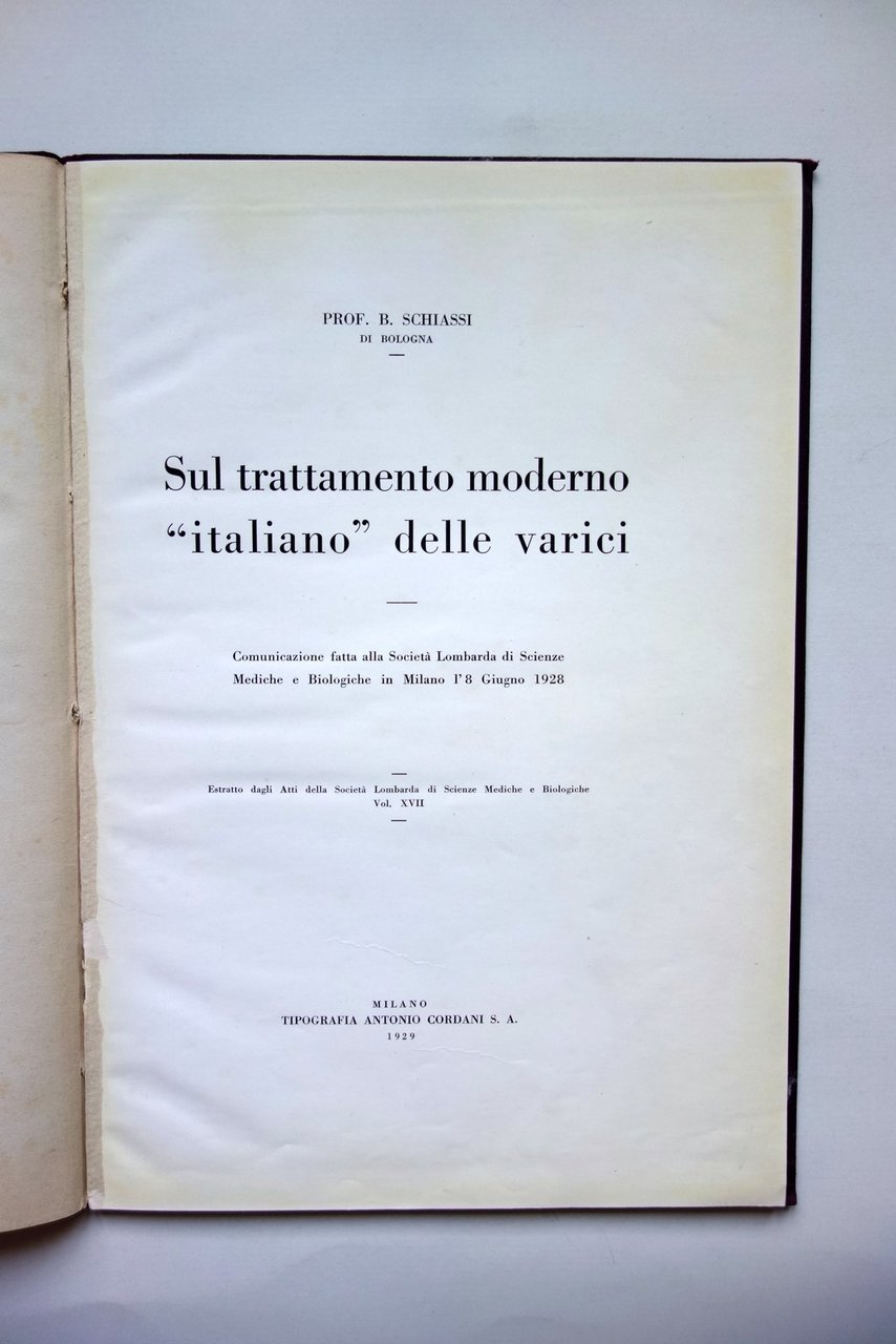 Sul Trattamento Moderno Italiano delle Varici B. Schiassi Cordani Milano 1929